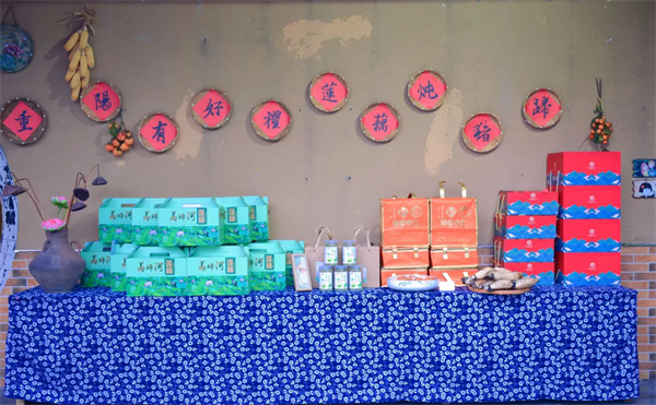 此外,活動(dòng)現(xiàn)場(chǎng)精心打造了“重陽(yáng)有好禮,蓮藕燉豬蹄”網(wǎng)紅墻,成為參會(huì)人員打卡留戀的熱門(mén)地點(diǎn);同時(shí),設(shè)置了農(nóng)副產(chǎn)品展銷(xiāo)區(qū),集中呈現(xiàn)紫陽(yáng)蒸盆子、蒿坪河蓮藕、紫陽(yáng)荷葉茶、蓮藕燉豬蹄等特色農(nóng)副產(chǎn)品。值得關(guān)注的是,硒園農(nóng)莊此次首次推出“蒿坪河蓮藕燉豬蹄”伴手禮盒,分為“四至五人份”和“八至十人份”兩種規(guī)格,于重陽(yáng)節(jié)前夕上市。該禮盒將堂食菜品轉(zhuǎn)化為便攜商品,為當(dāng)?shù)厣徟轰N(xiāo)售拓展了新渠道,也為蓮藕產(chǎn)業(yè)鏈延伸做了初步嘗試。