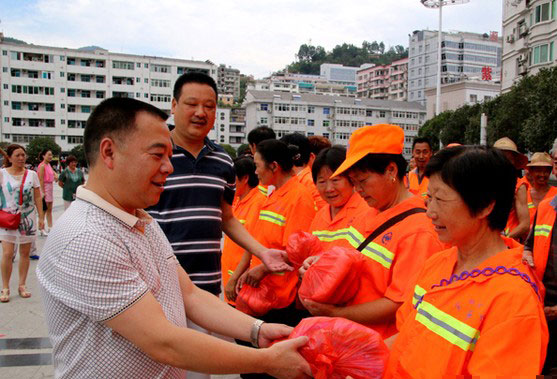 炎炎夏日,驕陽(yáng)似火。8月3日上午,由紫陽(yáng)縣規(guī)劃局、縣雙創(chuàng)辦組織的為奮戰(zhàn)在城市保潔一線的環(huán)衛(wèi)工人送清涼慰問活動(dòng)在縣城廣場(chǎng)舉行。為環(huán)衛(wèi)工人送去了毛巾、水杯、……