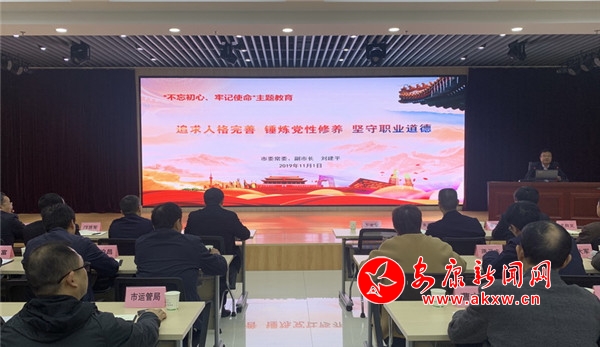 本網(wǎng)訊 11月1日下午,市委常委、副市長(zhǎng)劉建平結(jié)合“不忘初心、牢記使命”主題教育,以“追求人格完善、錘煉黨性修養(yǎng)、堅(jiān)守職業(yè)道德”為題,為分管部門(mén)黨員干部講黨課。市交通運(yùn)輸局、市衛(wèi)健委、市醫(yī)保局及下屬單位共70余名黨員干部現(xiàn)場(chǎng)聆聽(tīng)。9eQ安康新聞網(wǎng)