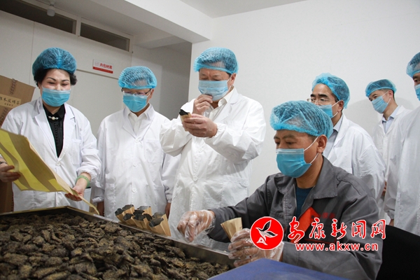 馬曉旬一行先后來到咸陽秦御茯茶有限公司、涇渭茯茶有限公司、仙喜辣木茯茶有限公司,走進展銷區(qū)、生產(chǎn)車間、手工茶作坊、倉儲室,詳細了解茯茶發(fā)展思路、生產(chǎn)工藝、原料供應(yīng)、展銷等情況。KqL安康新聞網(wǎng)