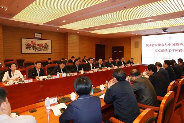 中國藥科大學(xué)黨委常委、副校長(zhǎng)陸濤對(duì)郭青一行表示熱烈歡迎。他表示,中國藥科大學(xué)將繼續(xù)深化拓展定點(diǎn)幫扶成果,充分發(fā)揮人才、科研、教育等優(yōu)勢(shì),立足安康資源稟賦,不斷健全幫扶機(jī)制、優(yōu)化幫扶方式,積極搭建校地合作、校企合作平臺(tái),加快推進(jìn)中藥材產(chǎn)業(yè)科技創(chuàng)新和成果轉(zhuǎn)化,實(shí)現(xiàn)優(yōu)勢(shì)互補(bǔ)、互利共贏。同時(shí),將圍繞安康的現(xiàn)實(shí)需求深入研究商討細(xì)化方案,推動(dòng)各項(xiàng)幫扶措施盡早落地落實(shí),在新征程中開創(chuàng)幫扶合作新局面。