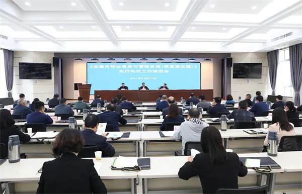 10月14日下午,市政府組織召開《安康市物業(yè)服務(wù)與管理?xiàng)l例(草案修改稿)》先行先試工作推進(jìn)會(huì),副市長周耀宜主持會(huì)議,市住建局局長張世波安排先行先試重點(diǎn)工作,市發(fā)改委、漢濱區(qū)政府、高新區(qū)管委會(huì),漢濱區(qū)新城辦、培新社區(qū)負(fù)責(zé)同志作表態(tài)發(fā)言。市人大常委會(huì)副主任鄭小東參加會(huì)議并講話。
