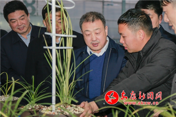 武文罡(左三)在寧陜縣城關(guān)鎮(zhèn)華嚴村花卉種養(yǎng)基地調(diào)研產(chǎn)業(yè)發(fā)展情況