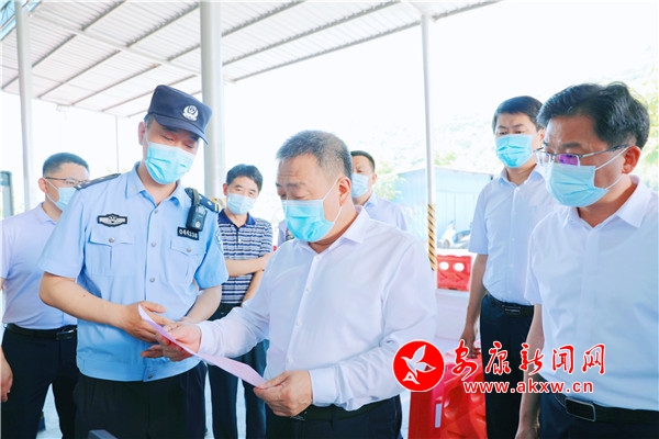 在城關(guān)鎮(zhèn)下卡子省際疫情防控卡點,武文罡詳細了解防控流程、交通查驗等情況,對堅守一線的防疫人員表示慰問和感謝。他強調(diào),當(dāng)前我市疫情防控工作總體平穩(wěn),但國內(nèi)疫情形勢依然嚴峻復(fù)雜,要緊繃思想之弦,杜絕麻痹大意,加強值班值守,耐心細致做好來返人員掃碼登記、驗碼測溫、48小時內(nèi)核酸檢測陰性證明查驗、風(fēng)險人員“點對點”轉(zhuǎn)運等工作,堅決守住外防輸入第一道關(guān)口。在下卡子省際水質(zhì)監(jiān)測站,武文罡強調(diào),要采取有力舉措加強流域綜合治理,強化源頭把控監(jiān)測,確保出陜斷面水質(zhì)持續(xù)向好、穩(wěn)定達標。