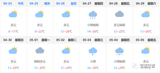 據(jù)氣象部門(mén)預(yù)測(cè),“五一”期間,天氣較好。有出行計(jì)劃,需持續(xù)關(guān)注天氣情況,以便做好準(zhǔn)備。