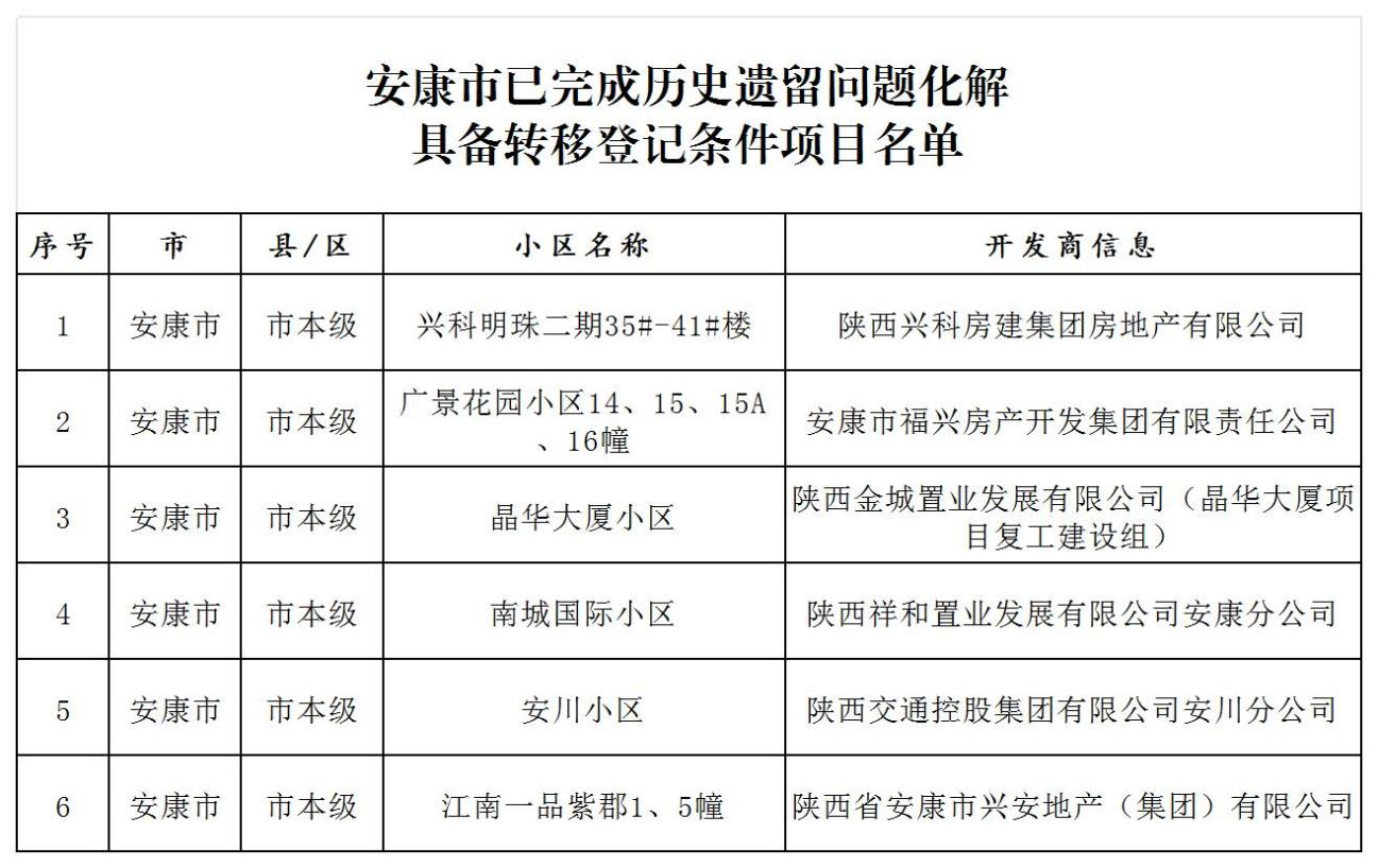 按照全市住房領(lǐng)域不動產(chǎn)“辦證難”方面群眾身邊不正之風和腐敗問題集中整治要求,為提高群眾辦證知曉率,提升轉(zhuǎn)移登記率,做到“應(yīng)登盡登”,現(xiàn)將2024年安康市本級范圍內(nèi)具備轉(zhuǎn)移登記條件項目名單進行公告公示,請廣大群眾及時向開發(fā)公司或登記機關(guān)提交轉(zhuǎn)移登記資料,維護自身合法權(quán)益。evR安康新聞網(wǎng)