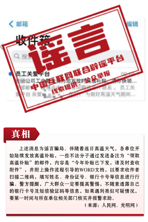 謠言10:掃描二維碼領(lǐng)取“高溫補貼”?