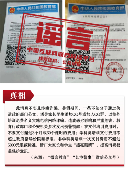 8月份,臨近新學(xué)年開學(xué),與學(xué)校招錄、新生入學(xué)等話題相關(guān)的謠言還會增多,開學(xué)季往往也是詐騙分子針對不同年齡段學(xué)生實施詐騙的高發(fā)時節(jié)。中國互聯(lián)網(wǎng)聯(lián)合辟謠平臺提醒廣大網(wǎng)民,對網(wǎng)上紛繁信息應(yīng)時刻保持警惕之心,不信謠、不傳謠、不造謠。同時要提高自身風(fēng)險防范意識,不給詐騙分子任何可乘之機。