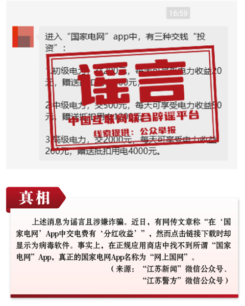 謠言1:在“國家電網(wǎng)”App中交電費有分紅收益?