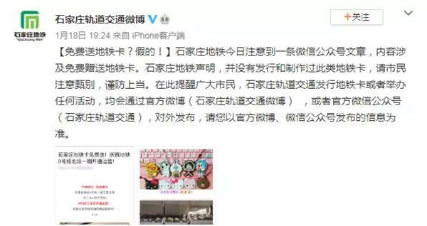 近年來,一些“免費贈送地鐵交通卡”的活動網(wǎng)頁時常在全國多地流傳,對此各路官方曾多次進行辟謠提醒。