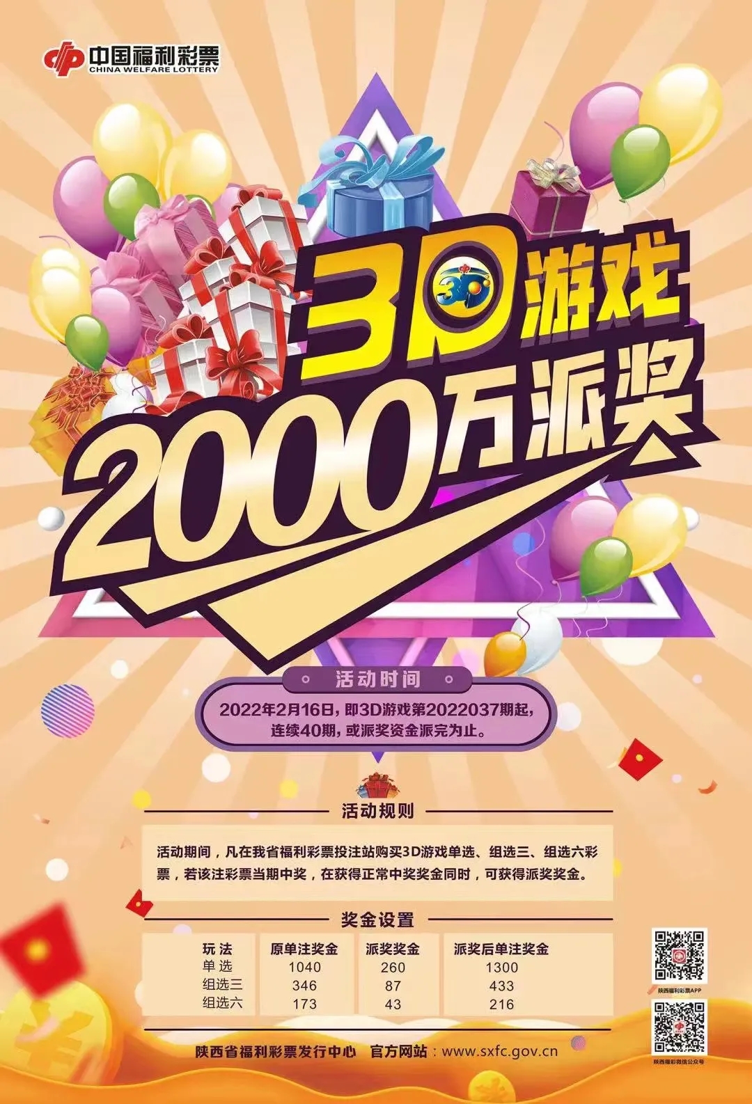 為回饋廣大購彩者對3D游戲的支持和厚愛,省福彩中心決定恢復(fù)開展原定于2021年12月25日受疫情影響未能如期開展的3D游戲2000萬元派獎(jiǎng)活動(dòng)。