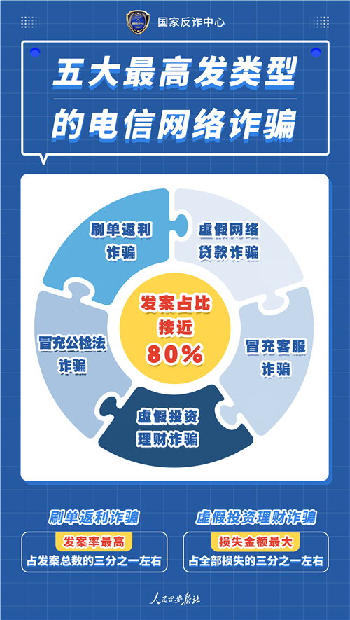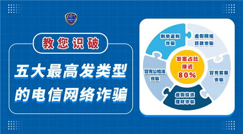 五大最高發(fā)類型的電信網(wǎng)絡(luò)詐騙海報