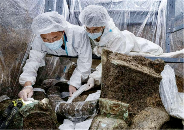 2019年秋,三星堆遺址祭祀坑區(qū)考古發(fā)掘重啟,新發(fā)現(xiàn)的6個“器物坑”發(fā)掘出土青銅器、金器、玉器、牙雕等文物共計17000余件,包括青銅大面具、青銅神壇等重要文物,“再醒驚天下”。