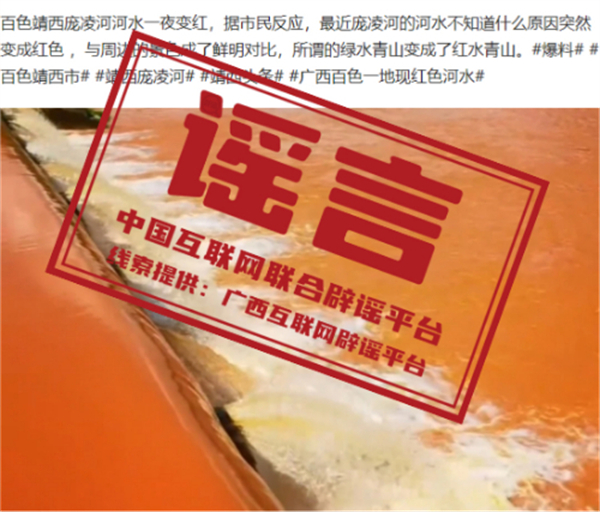 謠言:廣西百色靖西龐凌河河水一夜變紅?