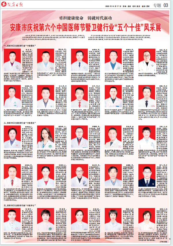 (2023年8月17日安康日報(bào)03版《安康市第六個(gè)中國醫(yī)師節(jié)暨衛(wèi)健行業(yè)“五個(gè)十佳”風(fēng)采展》)