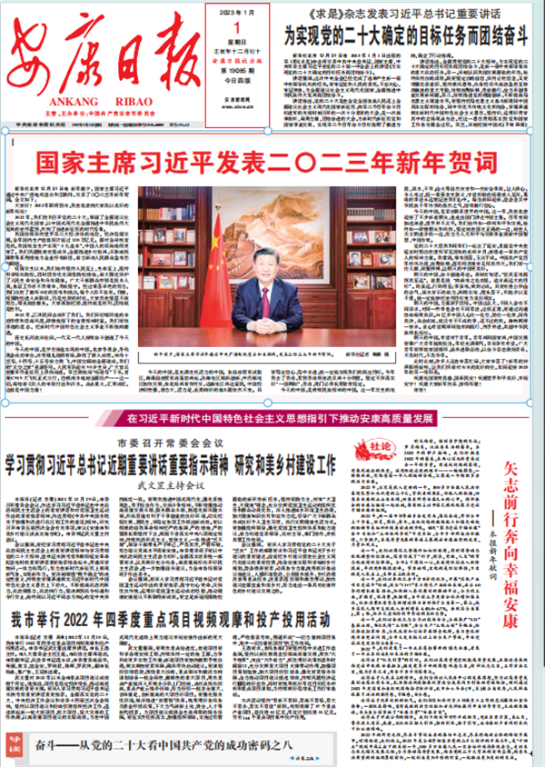 (2023年1月1日安康日報(bào)01版社論《矢志前行奔向幸福安康——新年獻(xiàn)詞》)