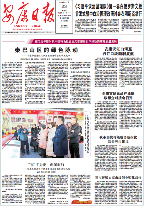 (2023年12月23日安康日報(bào)01版陜西日報(bào)、安康日報(bào)、縣級(jí)融媒體中心記者三級(jí)聯(lián)動(dòng)《秦巴山區(qū)的綠色脈動(dòng)——安康加快建設(shè)漢江生態(tài)經(jīng)濟(jì)帶重要節(jié)點(diǎn)城市》)