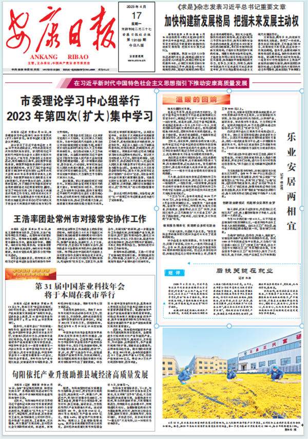(2023年4月17日安康日報(bào)01版開設(shè)“在習(xí)近平新時(shí)代中國特色社會(huì)主義思想指引下推動(dòng)安康高質(zhì)量發(fā)展”“溫暖的回響”欄目)