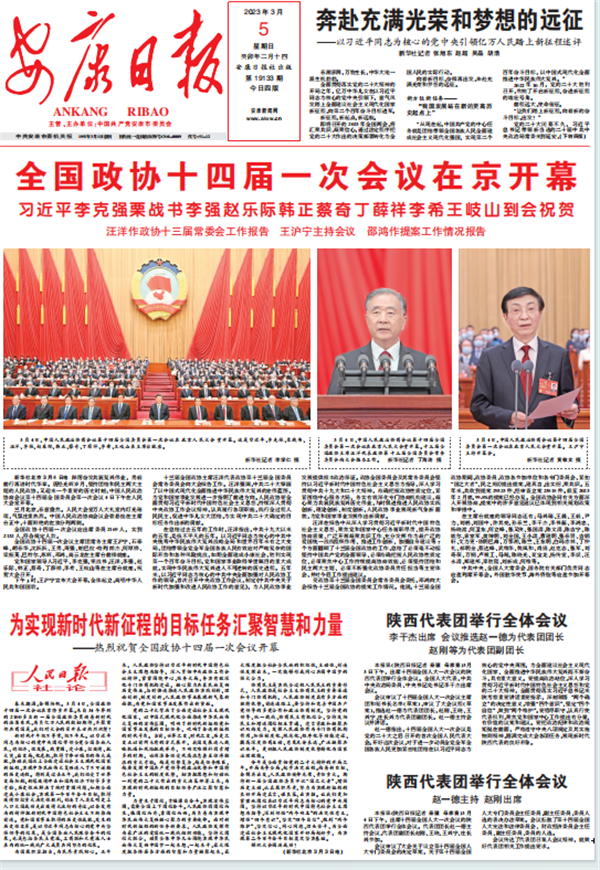 (2023年3月5日安康日報(bào)01版《全國政協(xié)十四屆一次會(huì)議在京開幕》)