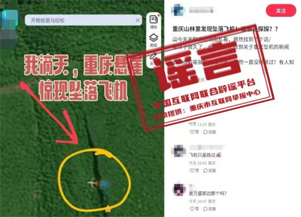 謠言:重慶山林里驚現(xiàn)墜落飛機(jī)?