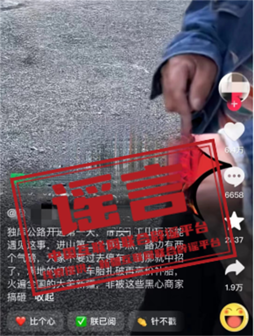謠言:商家為賺補(bǔ)胎錢在獨(dú)庫(kù)公路撒釘子?