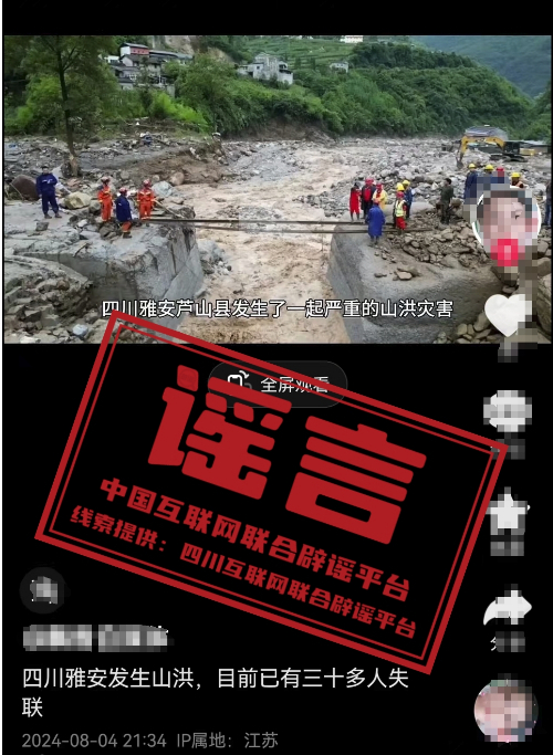 謠言:四川雅安蘆山縣發(fā)生山洪災(zāi)害致三十多人失聯(lián)?
