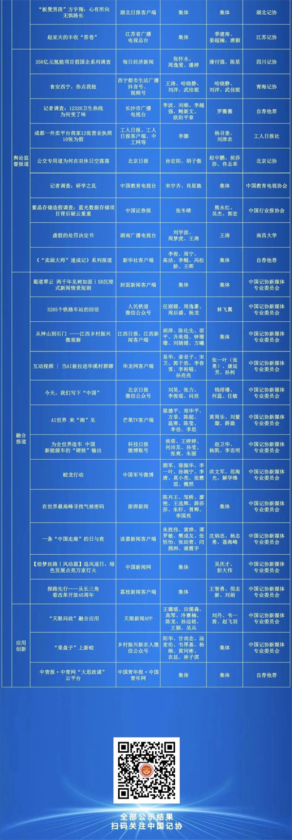 公示截止日期為2024年11月3日。在此期間,社會各界可通過電話、傳真、信函或電子郵件等方式發(fā)表意見。中國記協(xié)評獎辦公室將認(rèn)真受理,按照《評選辦法》規(guī)定對有關(guān)舉報進行核查,并提出處理意見報評委會主任會議決定。