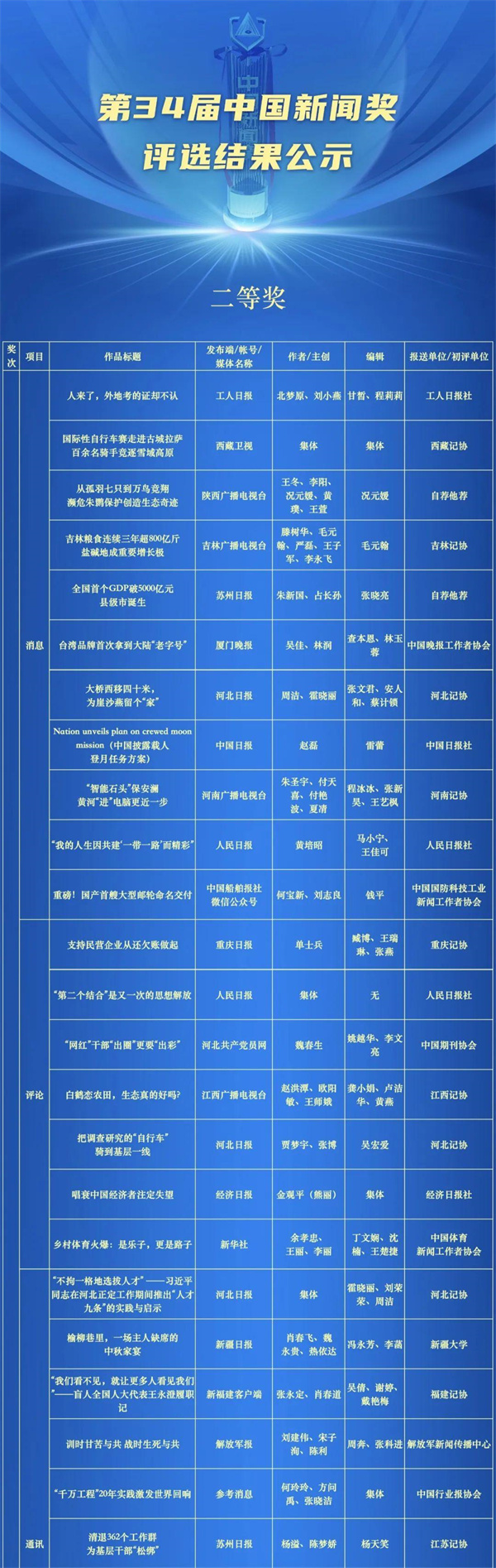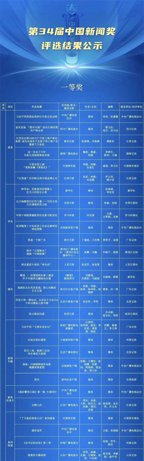 關(guān)于公示第34屆中國新聞獎評選結(jié)果的公告