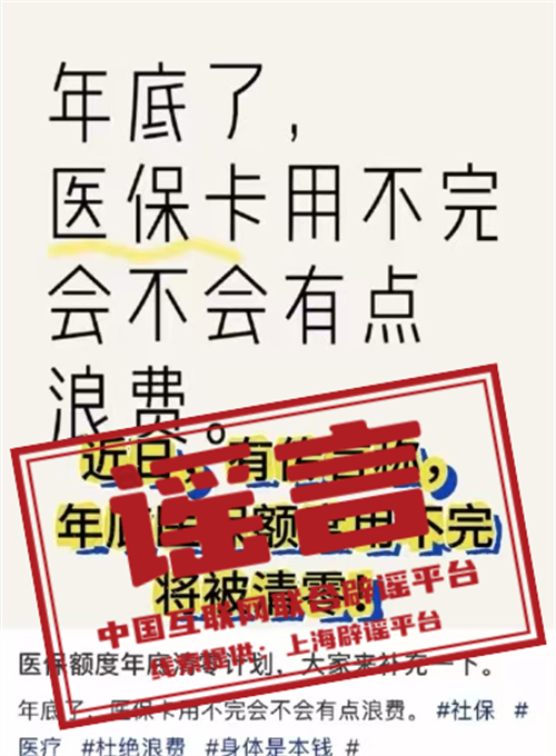 真相:臨近年底,社交平臺上關于“醫(yī)保額度”的話題,如“職工門診統(tǒng)籌額度再不用完,12月底就要清零了”“要抓緊時間用,不然白白浪費了”又熱了起來。經求證發(fā)現,所謂的“年底清零”純屬無稽之談,此前已被多地醫(yī)療保障局公開辟謠。