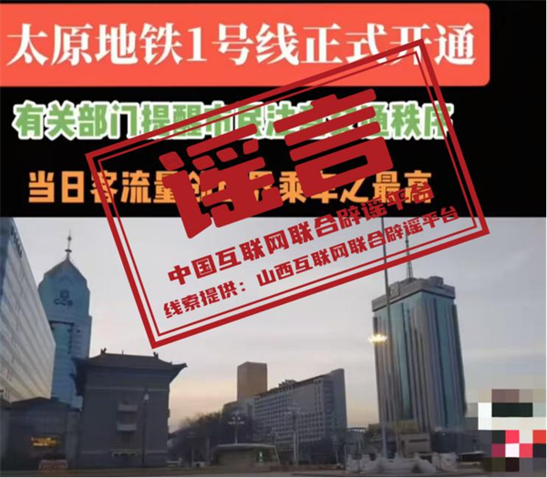 真相:近日,有網(wǎng)民發(fā)布短視頻稱“太原地鐵1號(hào)線正式開通,有關(guān)部門提醒市民注意交通秩序,當(dāng)日客流量創(chuàng)世界乘車之最高”。經(jīng)與當(dāng)?shù)亟煌ú块T核實(shí),此信息內(nèi)容不實(shí)。該網(wǎng)民行為違反《網(wǎng)絡(luò)信息內(nèi)容生態(tài)治理規(guī)定》第六條第八款規(guī)定,網(wǎng)信部門已將線索移交公安部門進(jìn)一步調(diào)查處理。(來源:“山西網(wǎng)絡(luò)舉報(bào)”微信公眾號(hào))
