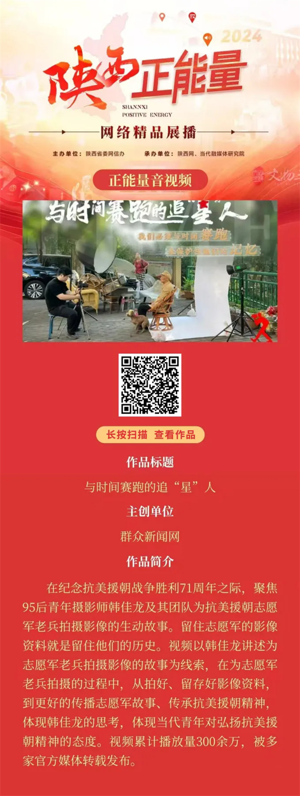 2024陜西正能量網(wǎng)絡(luò)精品展播丨正能量音視頻:與時間賽跑的追“星”人