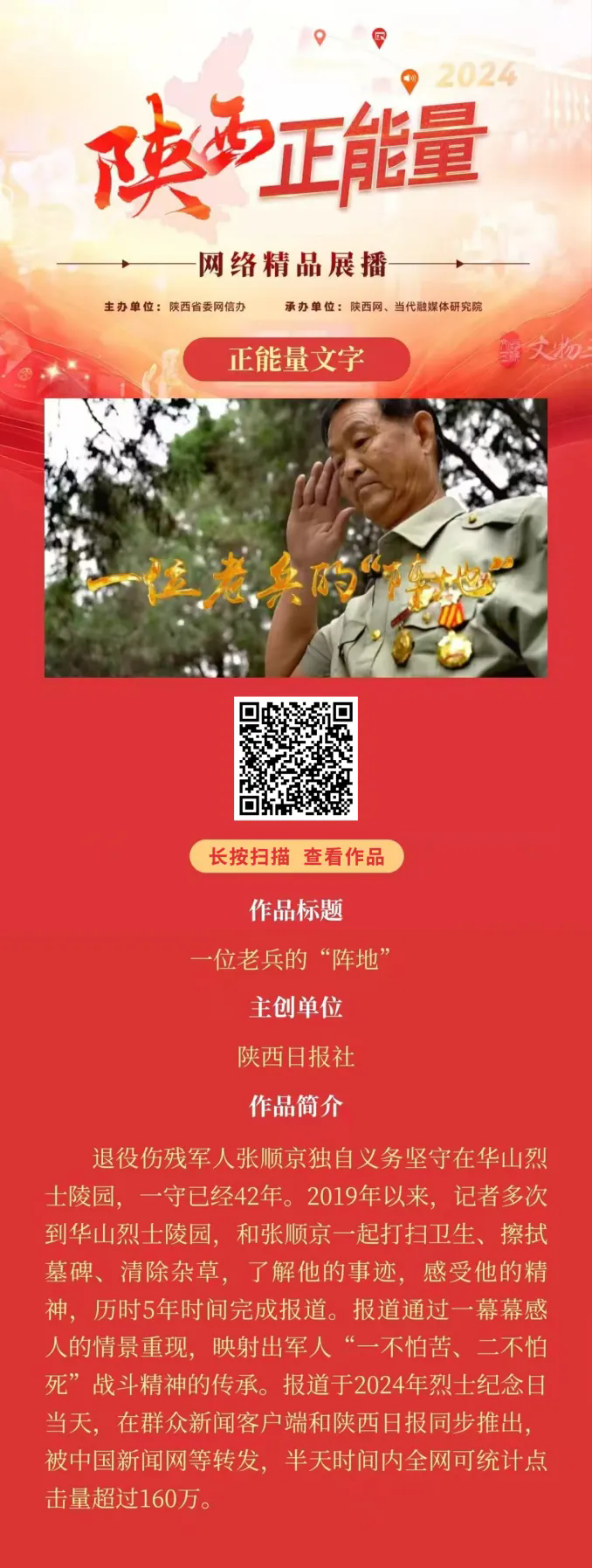 2024陜西正能量網(wǎng)絡(luò)精品展播丨正能量文字:一位老兵的“陣地”