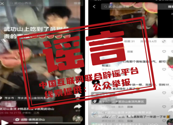 真相:近日,有網(wǎng)民在短視頻平臺(tái)發(fā)布“江西萍鄉(xiāng)武功山景區(qū)存在‘一錘子買賣’‘天價(jià)西瓜’”的視頻,引發(fā)社會(huì)關(guān)注。經(jīng)查,視頻中 “賣西瓜” 的男子實(shí)為旅行社組織的武功山景區(qū)游客,途中接受視頻發(fā)布者邀請(qǐng)參與拍攝了一段“賣西瓜”的視頻。該西瓜系旅行社同行人員所帶,并非如視頻所說在景區(qū)內(nèi)購(gòu)買,景區(qū)也不存在網(wǎng)傳的“18元泡面”、“240元西瓜”等情況。目前,公安機(jī)關(guān)已對(duì)造謠者作出行政拘留十日的行政處罰。(來源:“公安部網(wǎng)安局”微信公眾號(hào)、“江西網(wǎng)警”微信公眾號(hào))