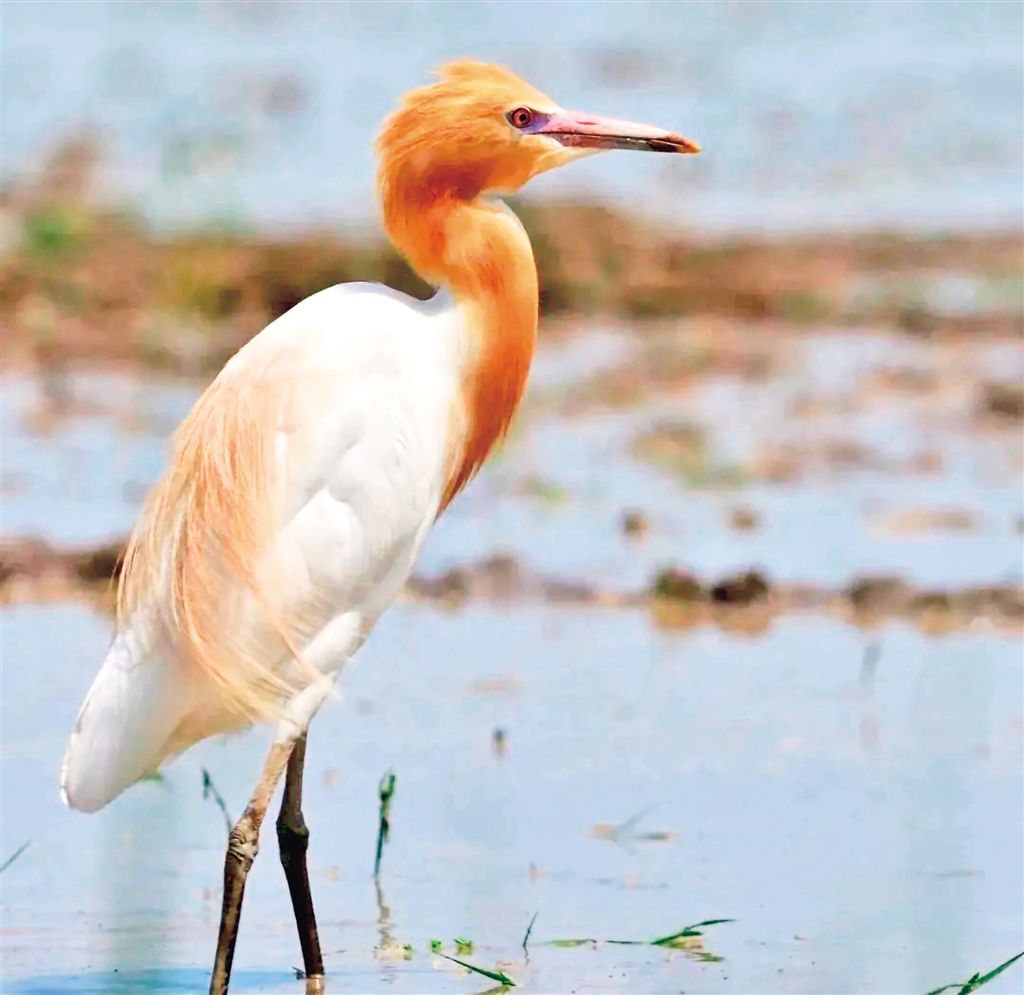 夏羽大都白色;頭和頸橙黃色,前頸基部和背中央具羽枝分散成發(fā)狀的橙黃色長形飾羽;前頸飾羽長達胸部,背部飾羽向后長達尾部,尾和其余體羽白色。冬羽通體全白色,個別頭頂綴有黃色,無發(fā)絲狀飾羽。橙黃色的喙長、尖而直,較側(cè)扁、尖端多有小鋸齒;翅較寬長,前頸的基部和背部中央具有羽枝分散成發(fā)狀的橙黃色長飾羽、前頸的飾羽長達胸部,背部的飾羽向后長達尾部。牛背鷺喜歡站在牛背上或跟隨在耕田的牛后面啄食翻出來的昆蟲和牛背上的寄生蟲等,因此得名。(來源:安康市林學會)n3p安康新聞網(wǎng)