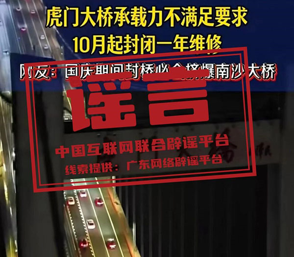 謠言:廣東虎門(mén)大橋10月起封閉維修?