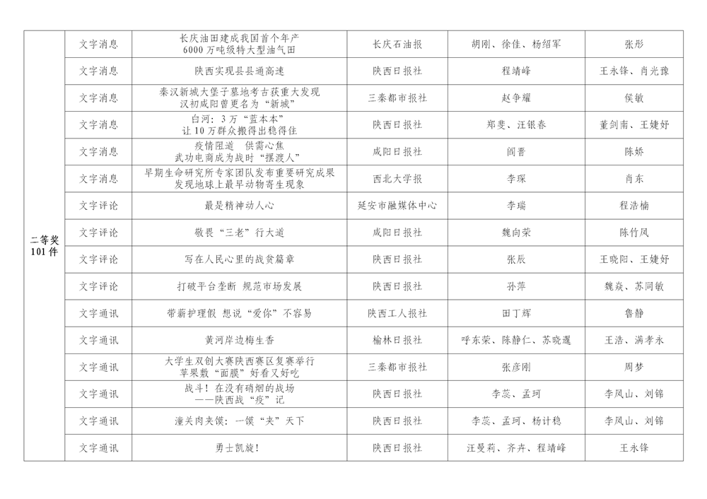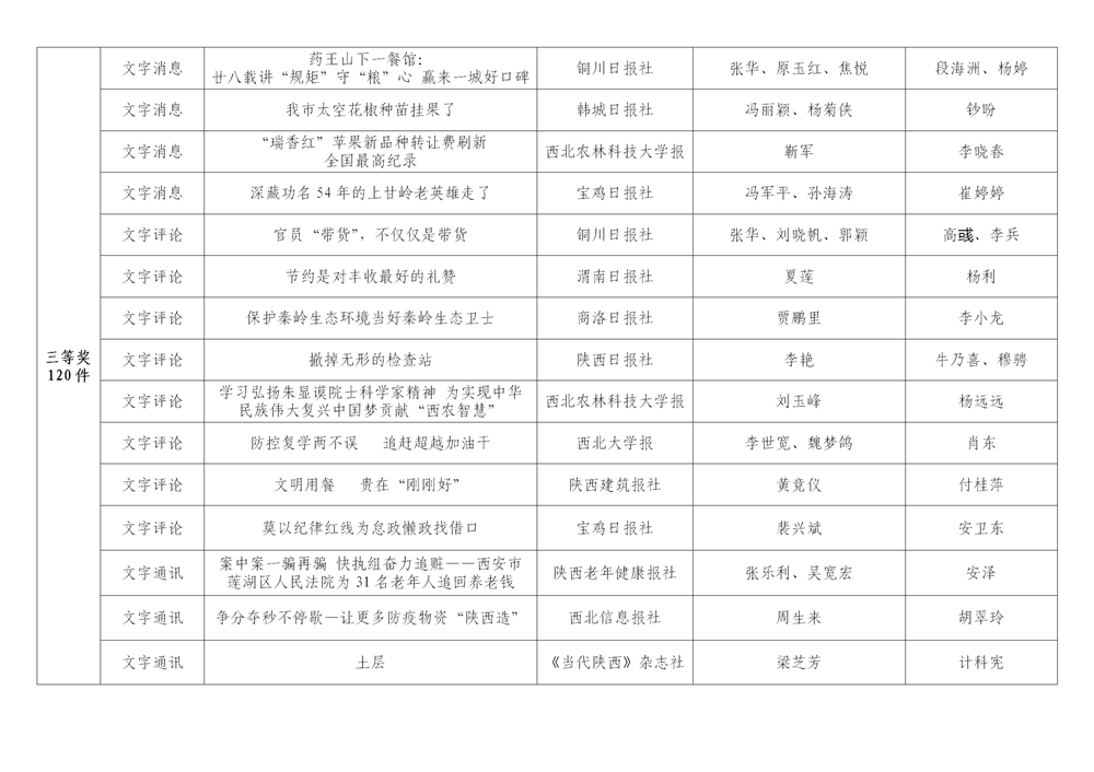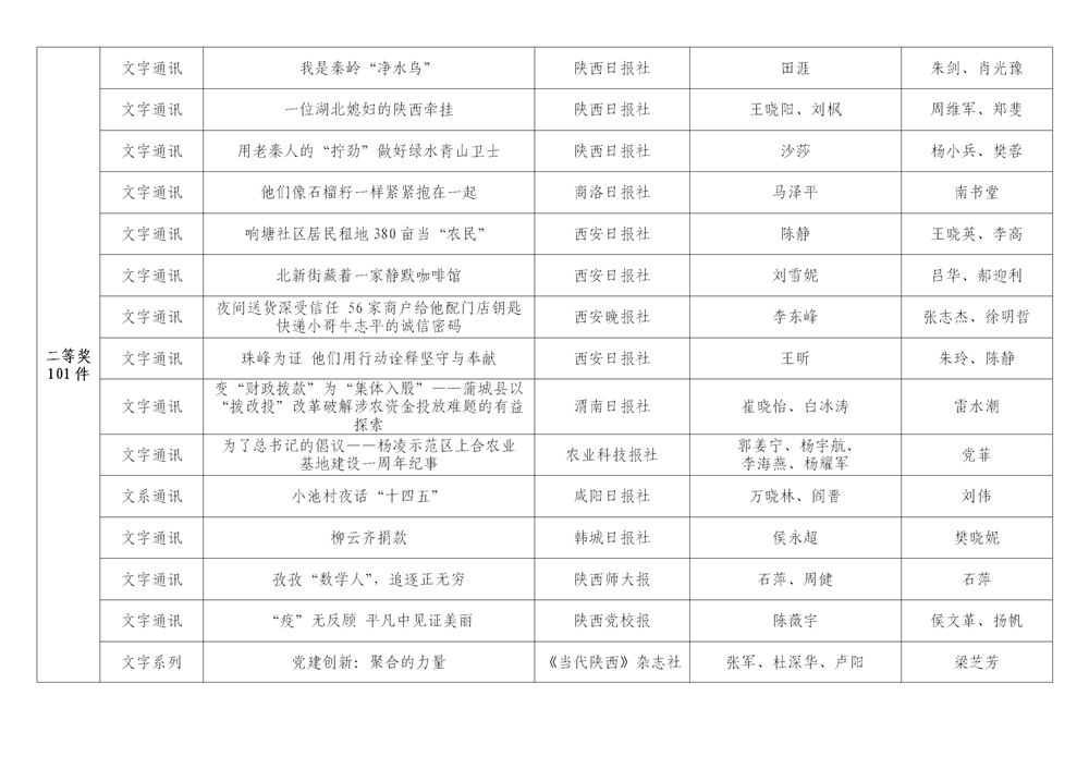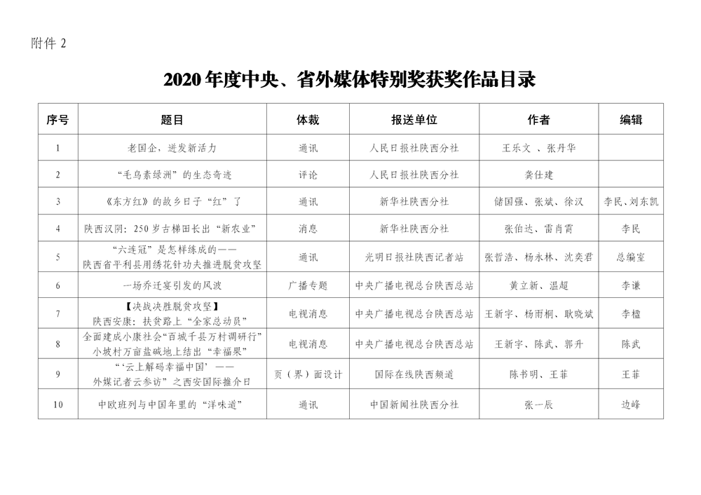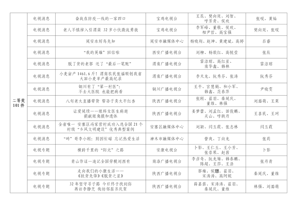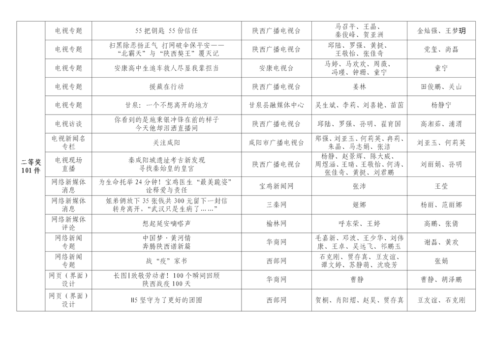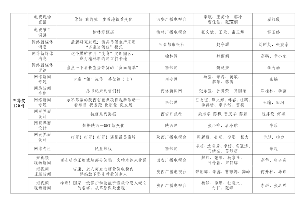 7月6日,陜西省新聞工作者協(xié)會(huì)公布了2020年度陜西新聞獎(jiǎng)、陜西省優(yōu)秀新聞工作者評選結(jié)果,最終評定2020年度陜西新聞獎(jiǎng)獲獎(jiǎng)作品281件,其中一等獎(jiǎng)作品60件、二等獎(jiǎng)作品101件、三等獎(jiǎng)作品120件;10件作品獲2020年度陜西新聞獎(jiǎng)“中央、省外媒體特別獎(jiǎng)”;12名新聞工作者獲得陜西省優(yōu)秀新聞工作者稱號。Ynz安康新聞網(wǎng)