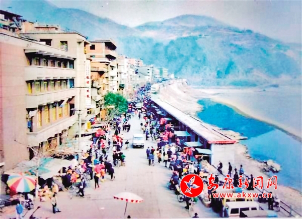 20世紀90年代初,旬陽河街農(nóng)貿(mào)市場,每到臘月,購買年貨的人絡繹不絕。吳定國 攝