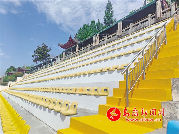 5月30日,工人們?cè)诘诙膶冒部禎h江龍舟節(jié)主會(huì)場(chǎng)進(jìn)行地面第二輪刷漆。據(jù)市市政園林處現(xiàn)場(chǎng)負(fù)責(zé)人介紹,截至目前,已搭建隔離護(hù)欄3715米,建立安檢門(mén)及疏散通道18個(gè)、蛇形通道8個(gè),制作安裝導(dǎo)視牌10塊,對(duì)看臺(tái)區(qū)立面刷漆2629平方米,擦拭清洗并固定座椅3794個(gè)。錢(qián)運(yùn)立 攝
