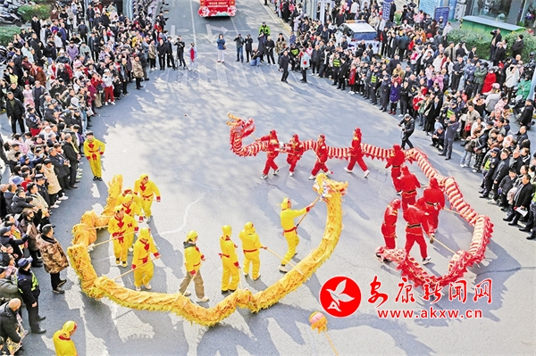 金州廣場(chǎng)的舞龍表演吸引眾多市民朋友駐足。李黎 攝