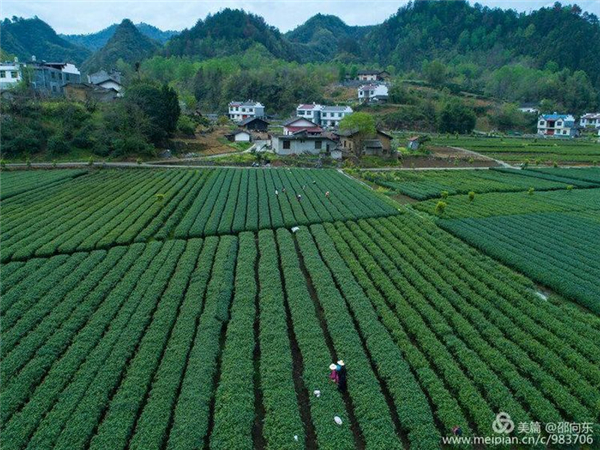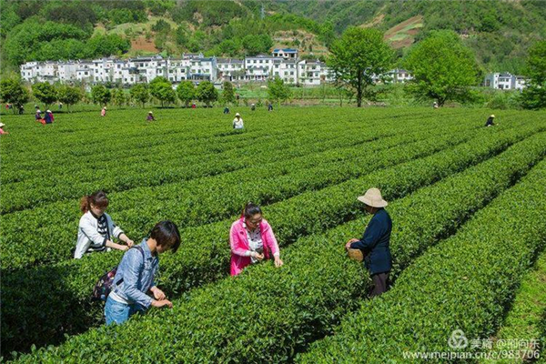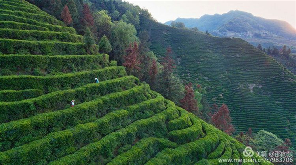 如今的紫陽,江還是那條江,梁還是那道梁,茶卻是越來越精致香純了,每到三月嫩芽初發(fā),江霧從水面慢慢升騰,毛茸茸的芽尖頂著露珠在晨光中閃耀,竹林掩映著白墻黛瓦,一縷炊煙合著柴雞的打鳴懶散飄過,采茶的姑娘腰系小竹簍,三五結(jié)伴在茶山穿行,人未見聲先來,嫩綠的樹林間搖擺著水蛇腰,老人說那是好山好水、好茶好飯養(yǎng)出的西妹兒。