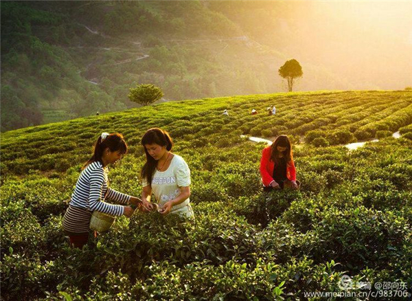 日上三竿,帶著新采摘的嫩葉走進茶農(nóng)新居,好客主人必是要捧出好茶招待,掬一捧屋后的山泉水,燒沸晾至八九成熱,水壺高高提起,水注一線,向著客人鳳凰三點頭,茶在熱流中凡翻滾,被濃縮收藏的春意也在激蕩中被喚醒,輕緩的舒展著腰肢,一枚枚嫩芽恢復(fù)了清純,如同天鵝湖畔的仙子隨杯中的水流旋轉(zhuǎn)跳動,直到靜水曲終,那蘊藏在葉脈芽尖的漫山春意亦緩緩釋放出來。押上一口一縷清香沁入肺腑,那是女兒十八春的味道,任你墻高門緊,早已飄出十里八鄉(xiāng)了,這樣的季節(jié)怎能不上茶山不踏春呢?