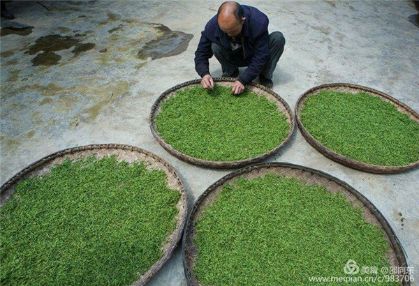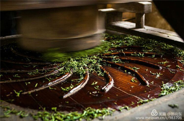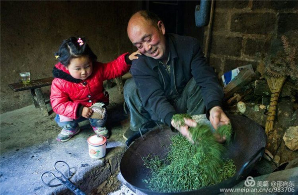 一群群花紅柳綠的采茶人,依著茶山一字排開,嬉笑逗樂間兩手如飛梭,一片片毛尖芽頭便攥入手中,落入竹簍,其穩(wěn)、準(zhǔn)、快、靈如同魔術(shù)。初產(chǎn)之春獨早銀針每斤芽頭約四萬枚,左右誤差不出百余,據(jù)說這明前銀針唯有這十七、八的山妹子親手采摘,制出的茶才別有一番甜香之氣,這也是傳統(tǒng)紫陽貢茶奧妙之所在。