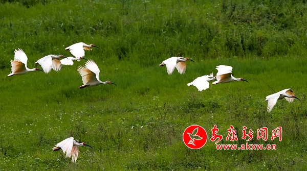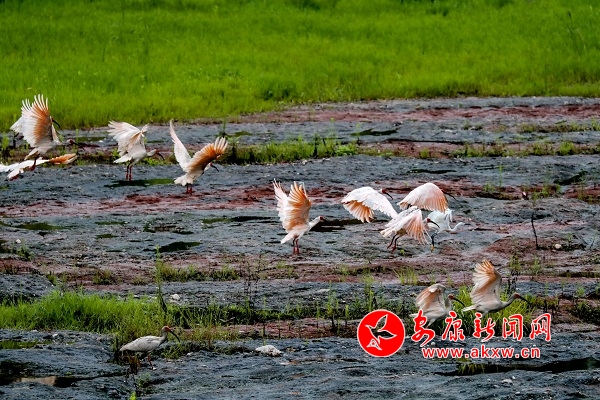 7月18日上午,22只野生朱鹮在漢陰月河草灘出現(xiàn)。據(jù)當(dāng)?shù)厝私榻B,近期就已發(fā)現(xiàn)十幾只朱鹮在此棲息,當(dāng)日朱鹮數(shù)量有所增加。據(jù)悉,我市自然生態(tài)環(huán)境不斷得到保護(hù)后,非常適宜朱鹮的生存,近幾年來已陸續(xù)發(fā)現(xiàn)朱鹮來到我市漢江水域和部分縣域小河覓食。 皮勇維 攝vvc安康新聞網(wǎng)