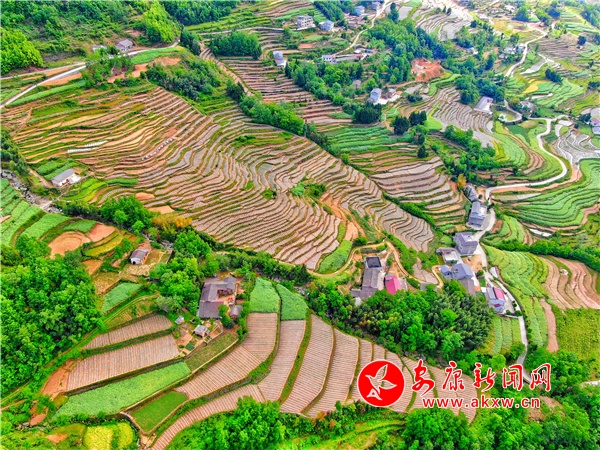 漢陰縣鳳堰古梯田鳳江片區(qū),密密麻麻的梯田猶如天梯直上云端,層層環(huán)抱著山脊,從山腳盤繞到山頂,大如曲池,小似新月,形狀各異,各具特色,阡陌相連,高低錯落,層層疊疊。 (圖文/杜開強(qiáng))VdE安康新聞網(wǎng)