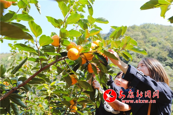 10月14日,秋高氣爽,走進石泉縣城關鎮(zhèn)絲銀壩村九組脆甜柿子種植基地,只見一個個色澤紅艷的柿子掛滿枝頭,十分誘人,吸引了不少游客前來采摘品嘗。(通訊員 許兵)yUZ安康新聞網