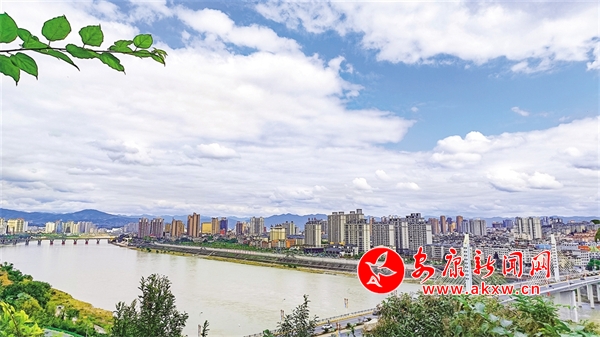 秋日的一江兩岸和藍天白云相映成趣,呈現(xiàn)出青山綠水的生態(tài)美景。李向軍 攝
