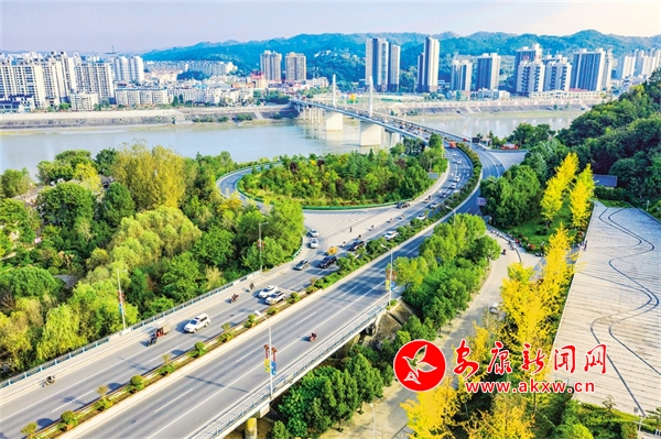 金秋時節(jié)的安康西津漢江大橋北。潘潤生 攝