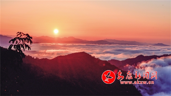 石泉縣城關(guān)鎮(zhèn)楓樹村秋韻正濃,山川色染繽紛,與日出晨霧交相輝映。董長松 攝