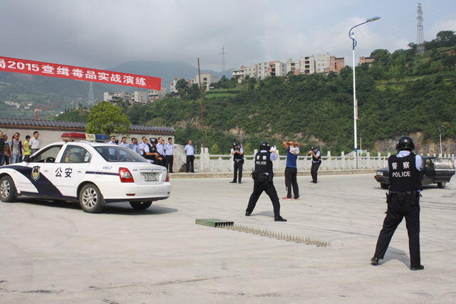 7月23日,旬陽(yáng)縣公安局在102省道開(kāi)展“查緝毒品”實(shí)戰(zhàn)演練!案餍〗M注意:接110通報(bào),有一輛黑色無(wú)牌現(xiàn)代小轎車(chē),車(chē)上有三名男子,可能攜帶毒品,從白柳鎮(zhèn)……