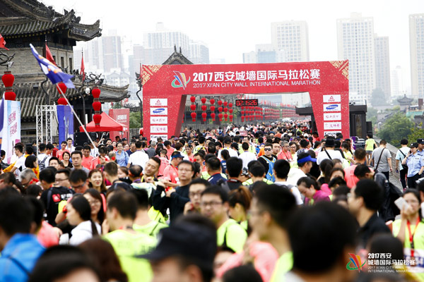 人民網(wǎng)北京9月11日電 2017西安城墻國際馬拉松賽于昨日上午8:00鳴槍開賽。作為世界唯一將賽道設置在完整城墻之上的馬拉松賽事,城墻馬自舉辦以來就備受廣大跑友的關注。今年亦是如此,來自美國、澳大利亞、法國、日本等13個國家和地區(qū)的3000名運動員齊聚古城墻,共同見證了這場歷史文化與體育競技相融合的跑步盛典。